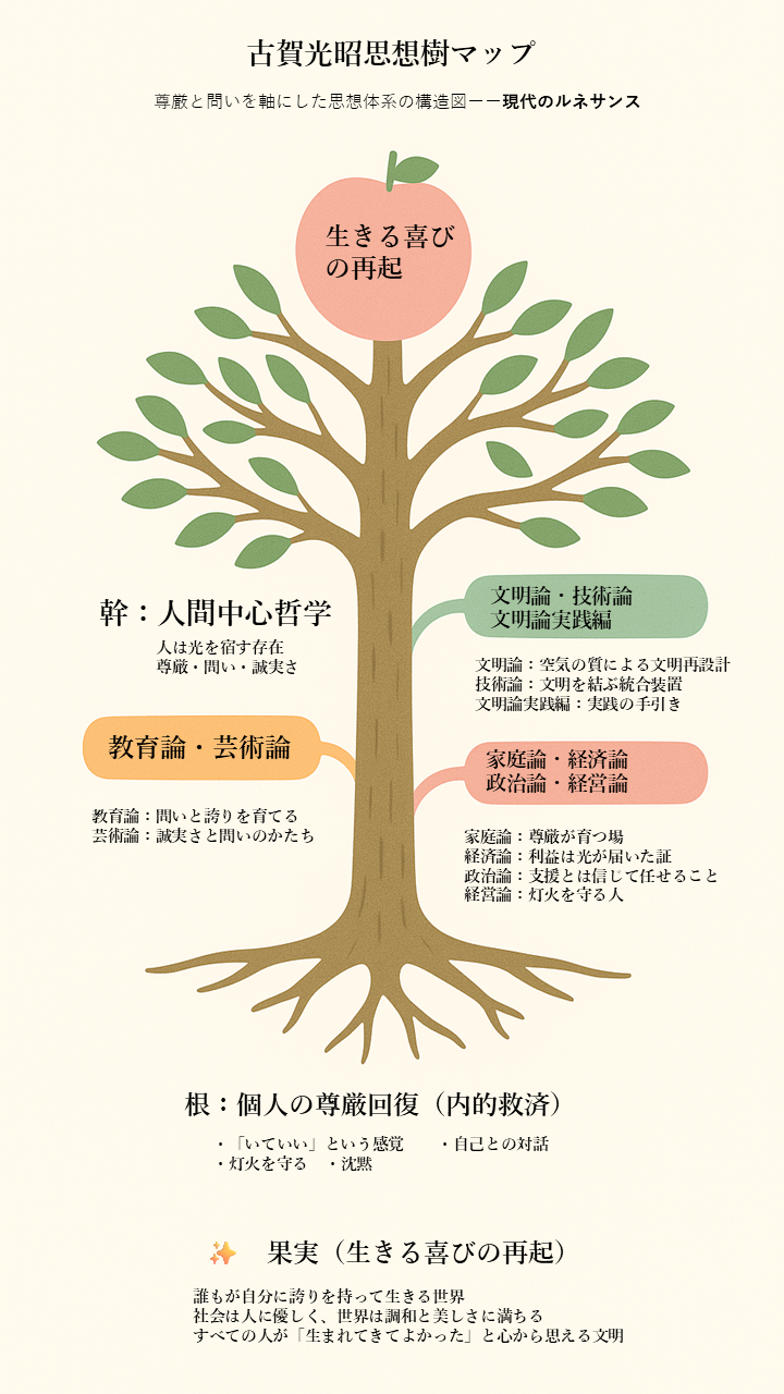 - 人間中心哲学(幹):「人は光を宿す存在」であるという哲学的前提