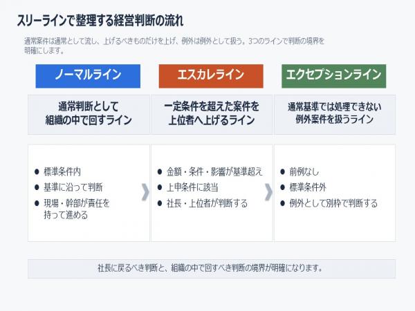 ― ノーマルライン/エスカレライン/エクセプションラインで、経営判断の流れを整理する ―